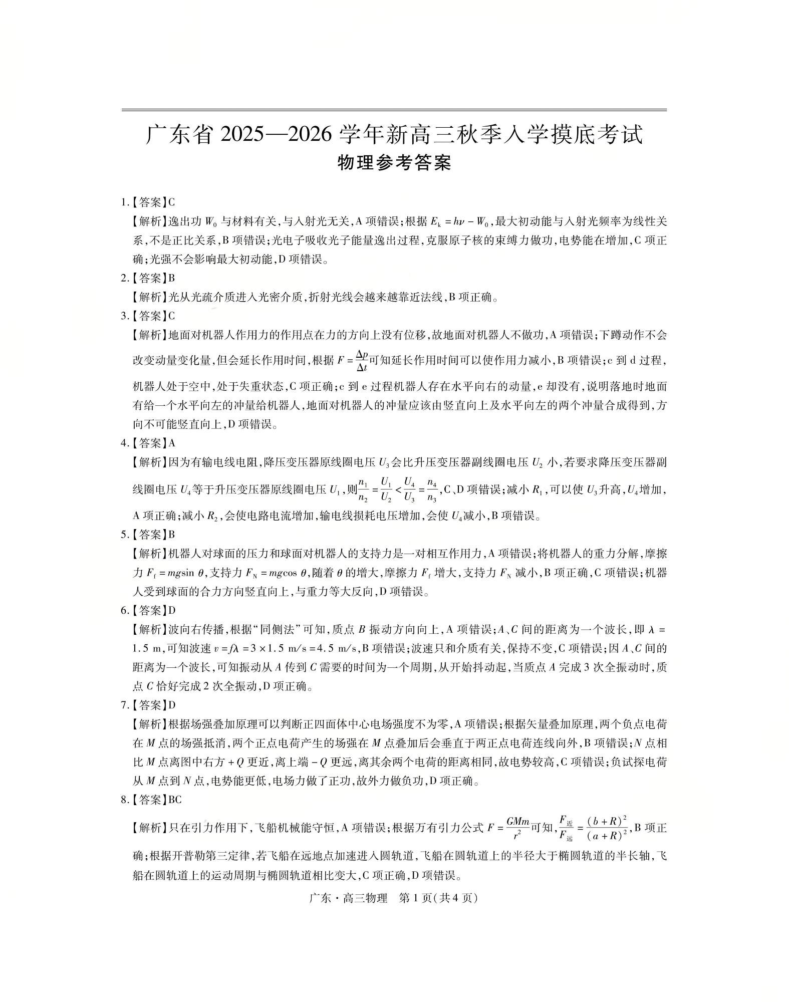 上进联考2025-2026学年新高三秋季入学摸底考试 物理答案.pdf