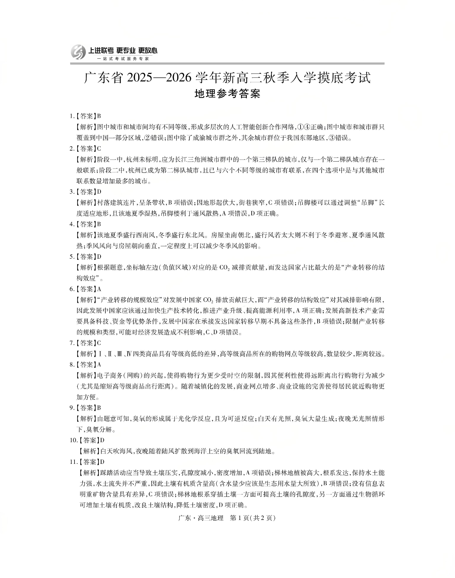 上进联考2025-2026学年新高三秋季入学摸底考试 地理答案.pdf