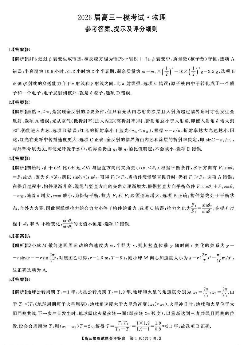 湖南省天壹名校联盟2026届高三8月入学考试 物理答案.pdf