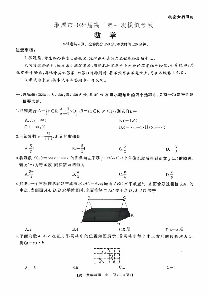 湖南省天壹名校联盟2026届高三8月入学考试 数学.pdf