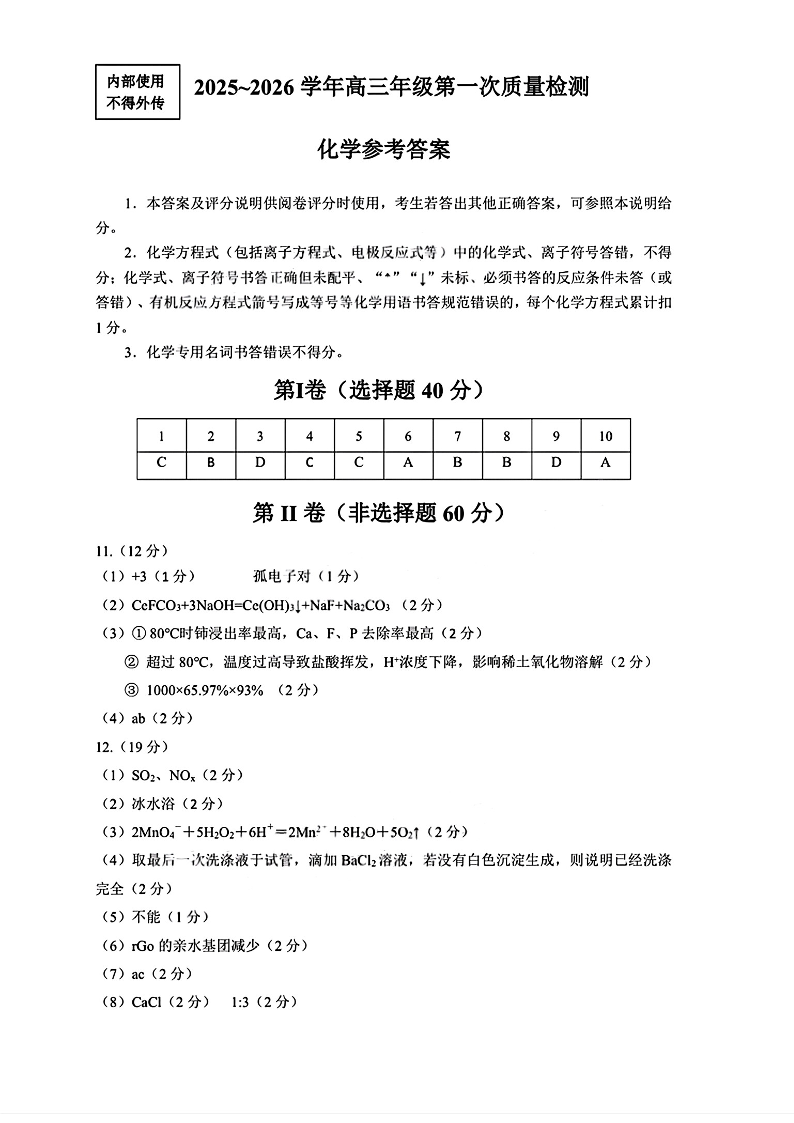 【化学答案】2025-2026学年福州市高三年级第一次质量检测.pdf