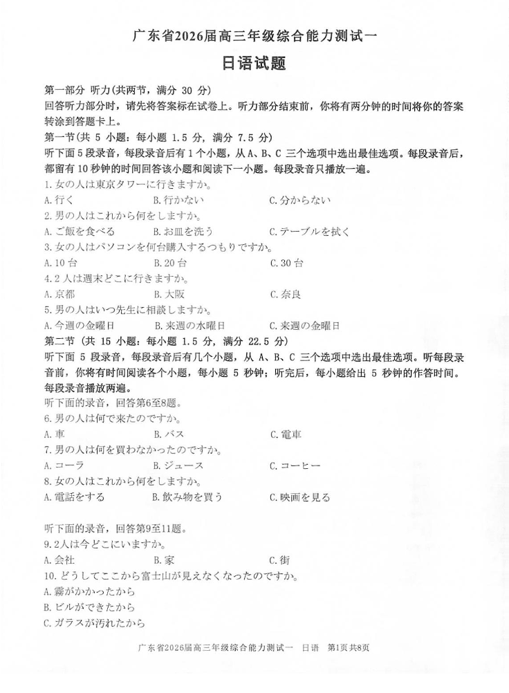 广东省2026届高三年级综合能力测试一 日语.pdf