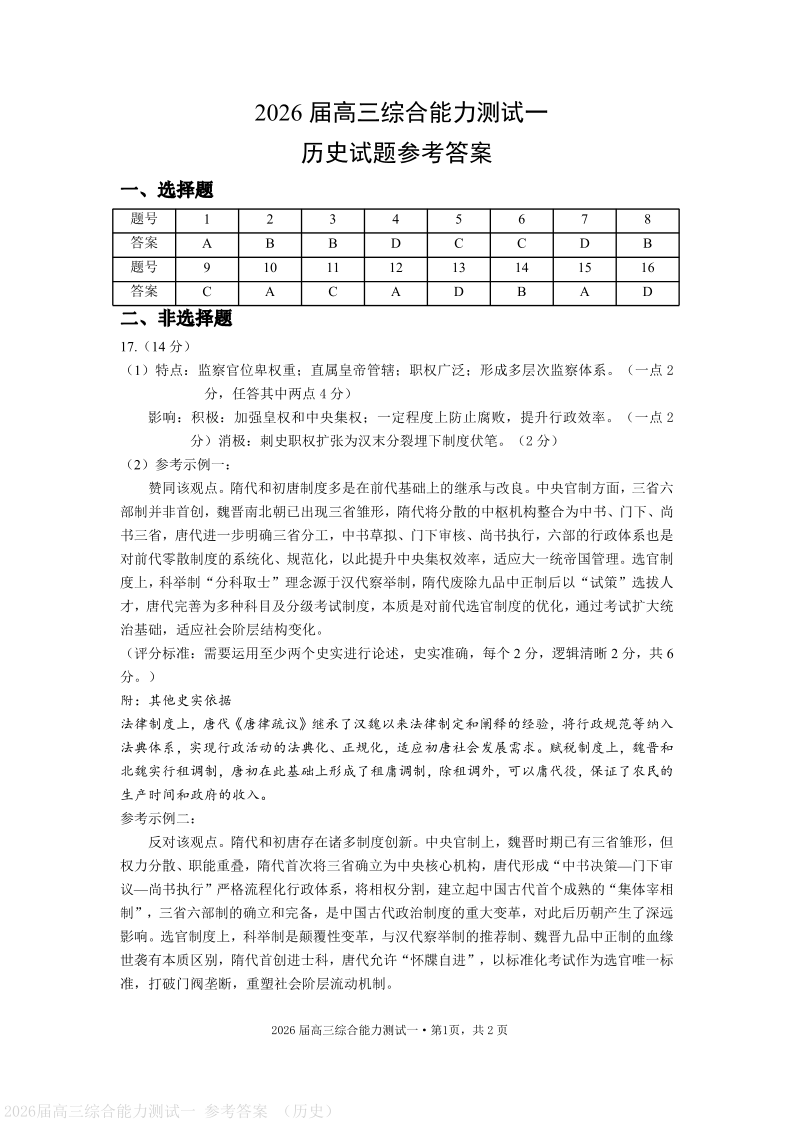 广东省2026届高三年级综合能力测试一 历史答案.pdf