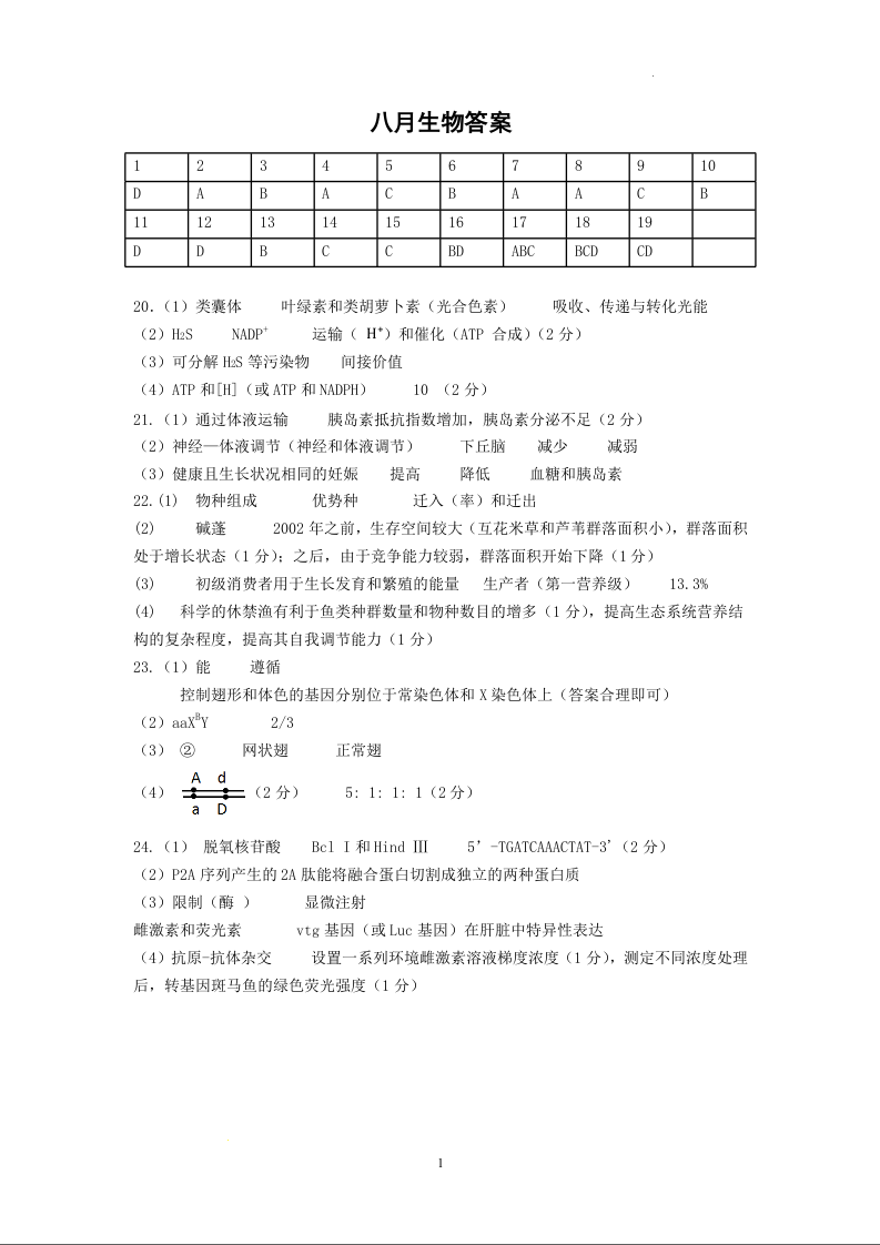 江苏省南京市2026届六校联合体高三8月学情调研考试 生物答案.docx