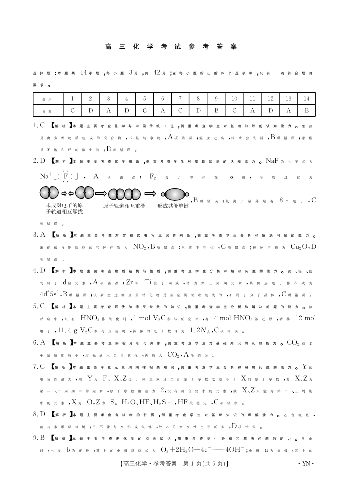 云南省金太阳2026届高三8月开学联考(YN)化学答案.pdf