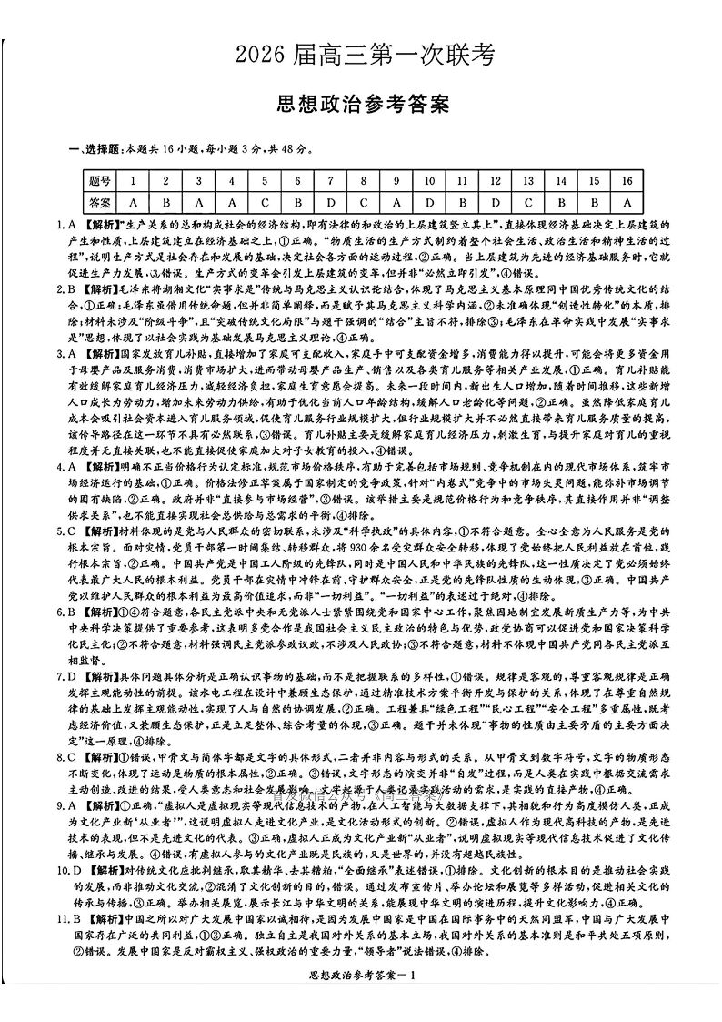 湖南省炎德英才2026届高三第一次联考 政治答案.pdf