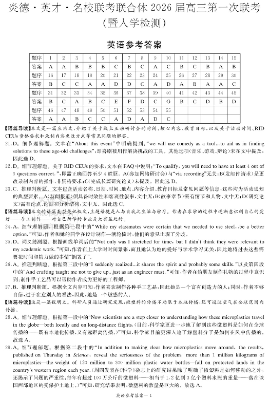 湖南省炎德英才2026届高三第一次联考 英语答案.pdf