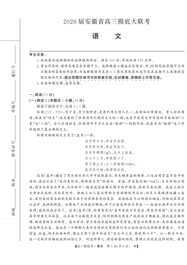 安徽省皖南八校2025-2026学年高三上学期8月摸底大联考 语文.pdf