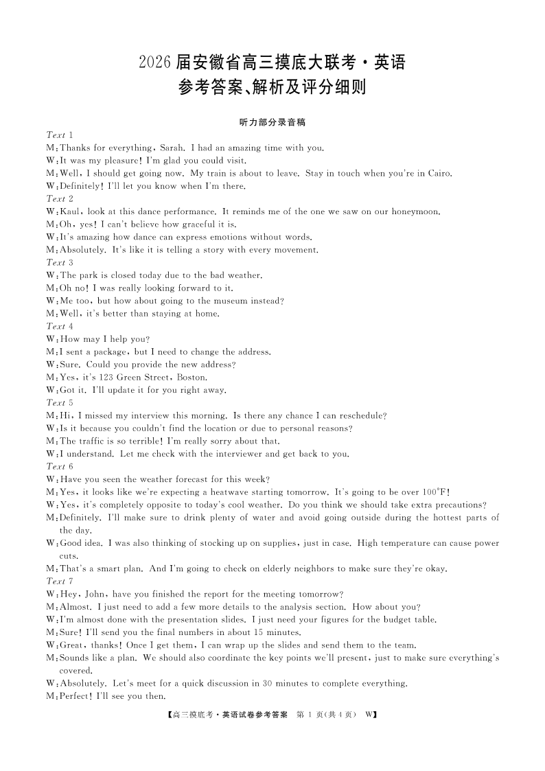 安徽省皖南八校2025-2026学年高三上学期8月摸底大联考 英语答案.pdf