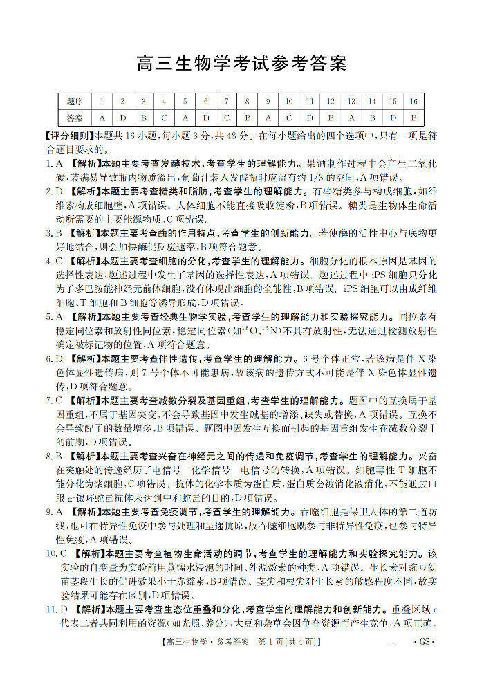 甘肃省金太阳2026届高三8月开学联考 生物答案.pdf