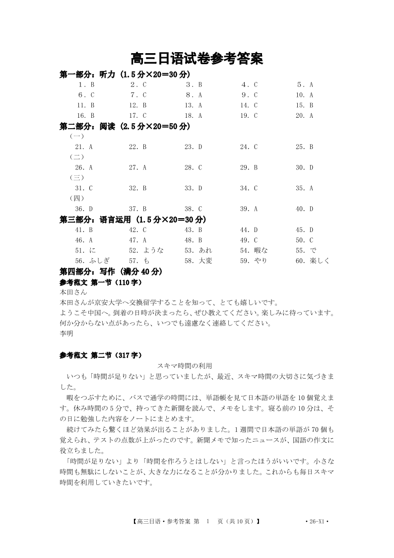 甘肃省金太阳2026届高三8月开学联考 日语答案.pdf