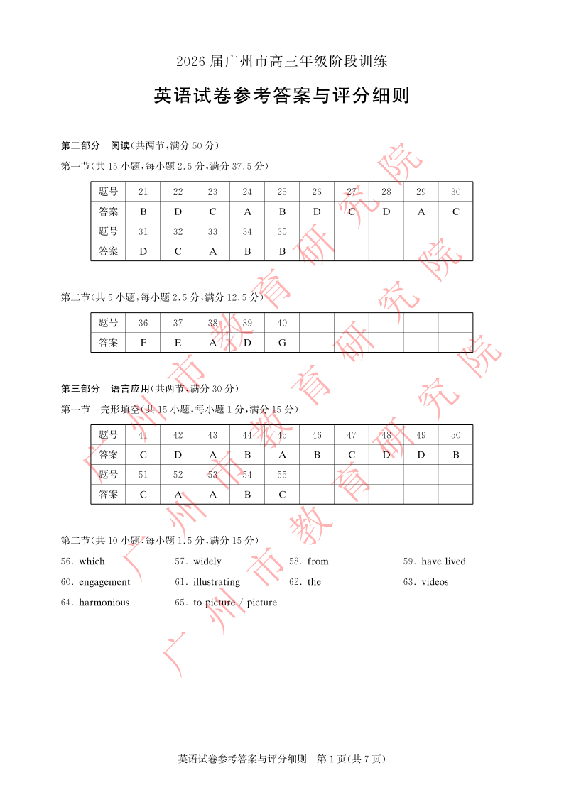 2026届广州市高三年级阶段训练-英语参考答案.pdf