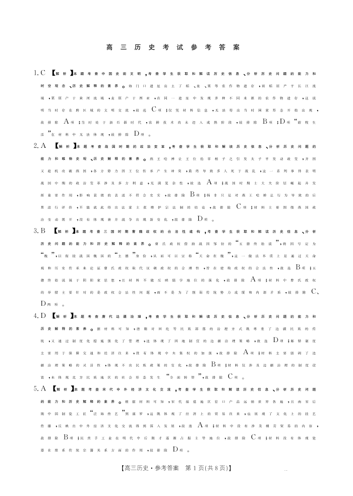 广西省金太阳2026届高三8月开学联考 历史答案.pdf