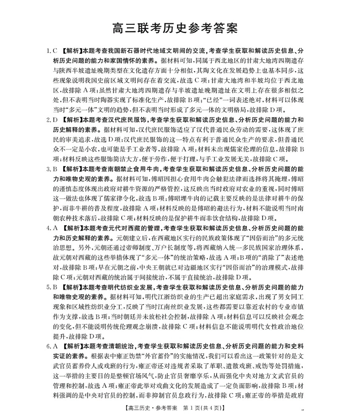 贵州省金太阳2026届高三8月开学联考 历史答案.pdf