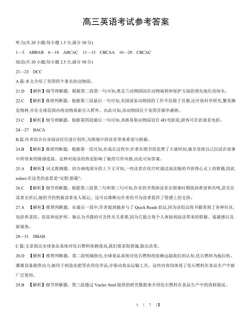 金太阳·江西省2026届高三上学期8月百万大联考 英语答案.pdf