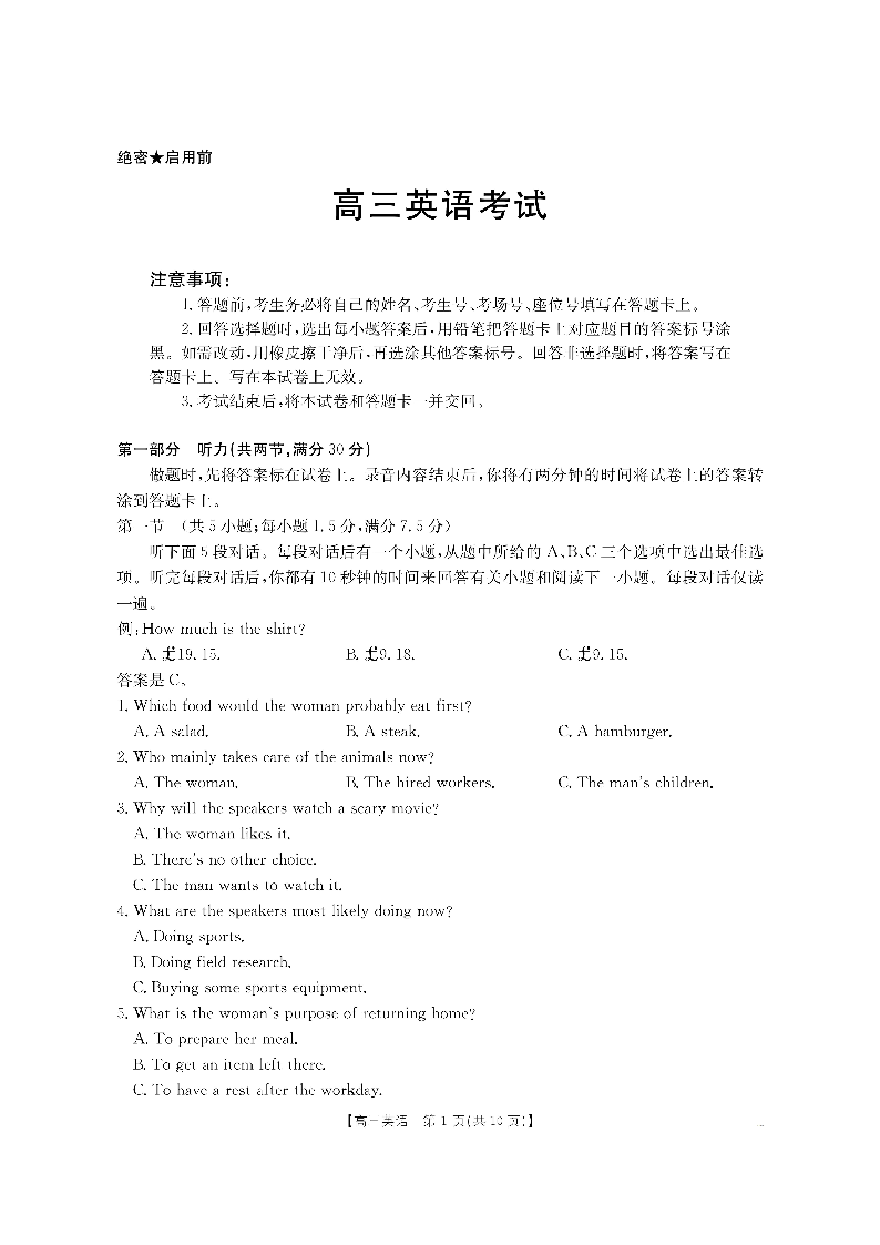 金太阳·江西省2026届高三上学期8月百万大联考 英语.pdf