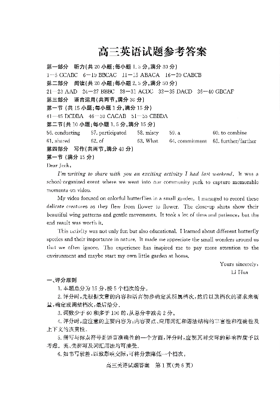 优高联考2026届高三上学期开学考试 英语答案.pdf
