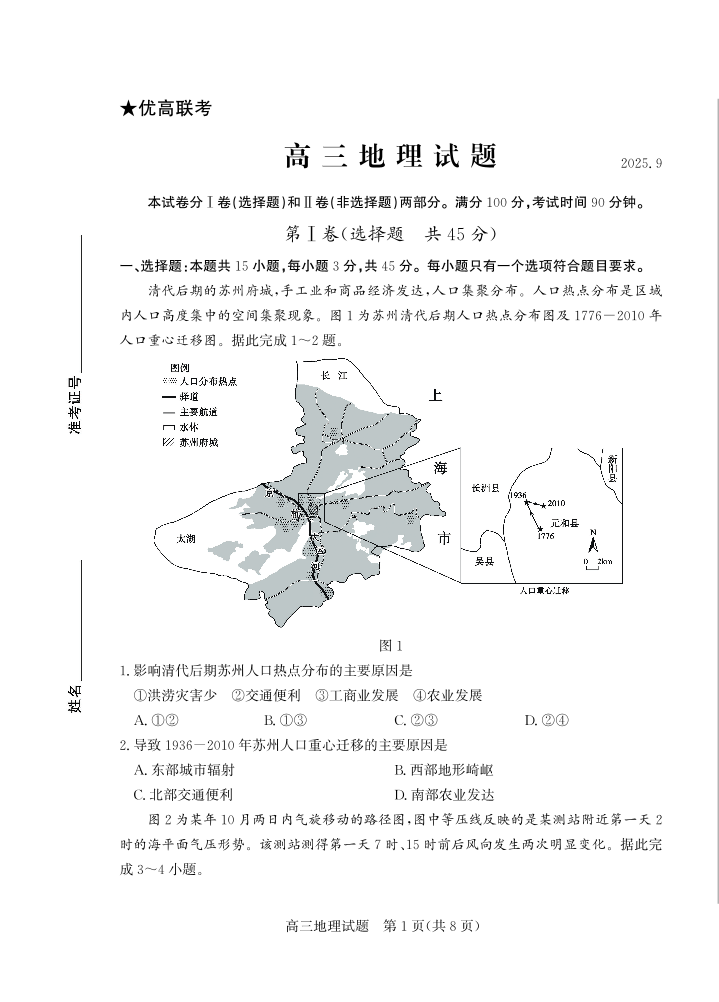 优高联考2026届高三上学期开学考试 地理.pdf