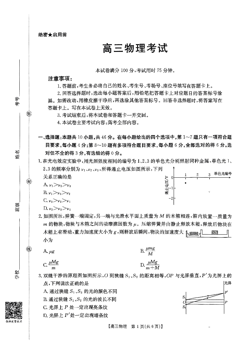 山西省金太阳2026届高三8月开学联考 物理.pdf