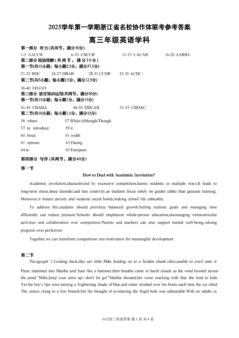 G12名校协作体2025学年第一学期高三9月暑假返校考 英语答案.pdf