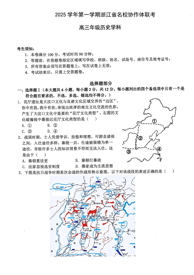 G12名校协作体2025学年第一学期高三9月暑假返校考 历史.pdf