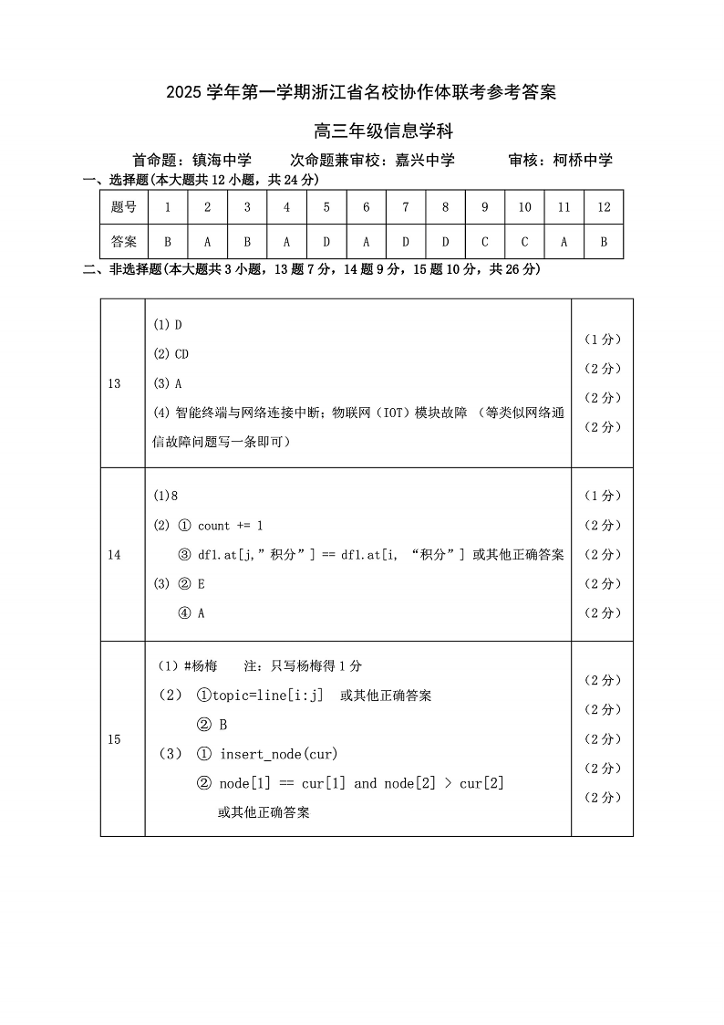 G12名校协作体2025学年第一学期高三9月暑假返校考 技术答案.pdf