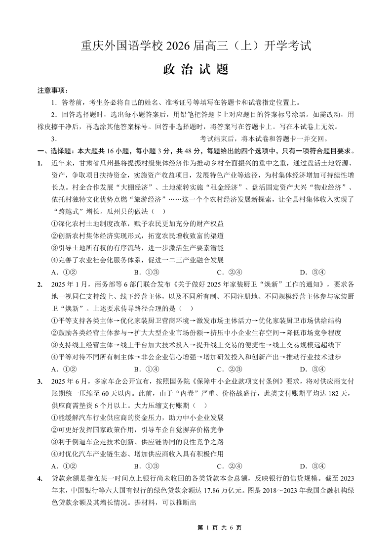 重庆外国语学校2026届高三(上)开学考试 政治.pdf