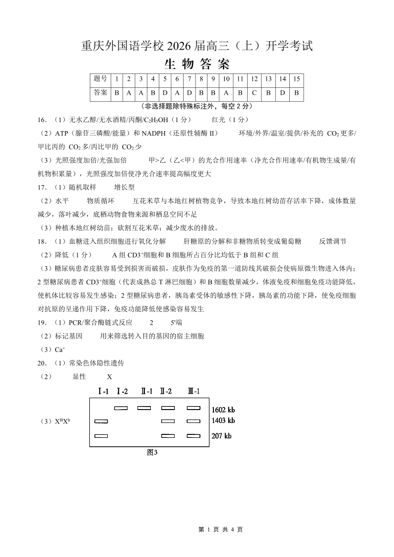重庆外国语学校2026届高三(上)开学考试 生物答案.pdf
