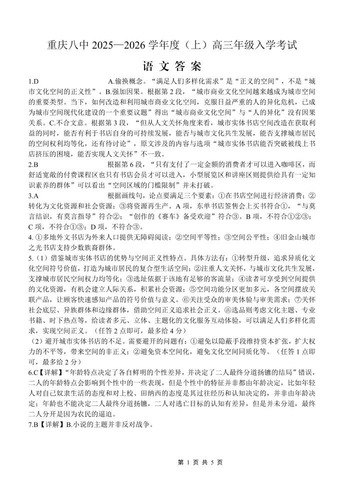 重庆八中2025-2026学年度(上)高三年级入学考试 语文答案.pdf