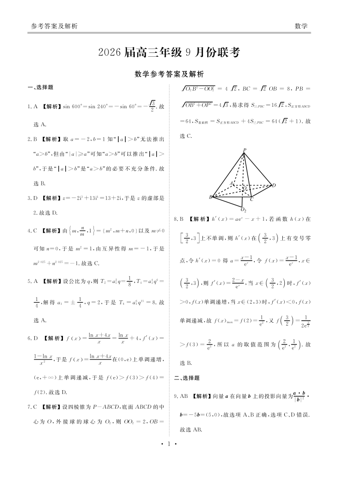 2026届高三年级9月份联考 数学答案.pdf