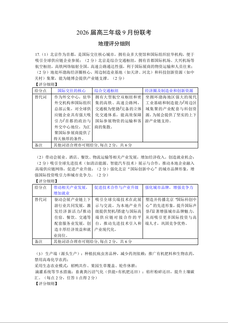 2026届高三年级9月份联考 地理评分细则.doc