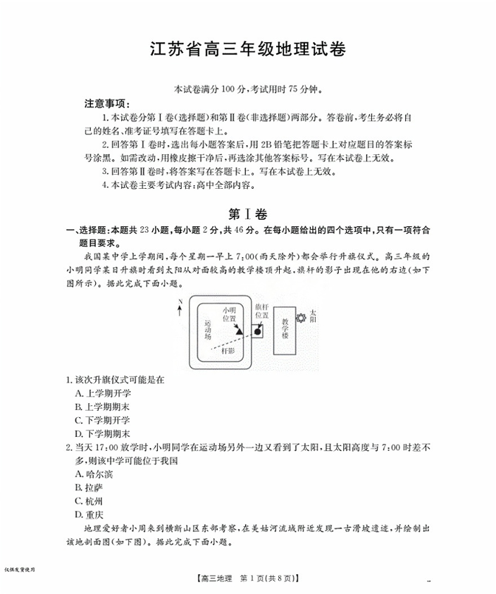 江苏省金太阳2026届高三上学期8月联考 地理.pdf