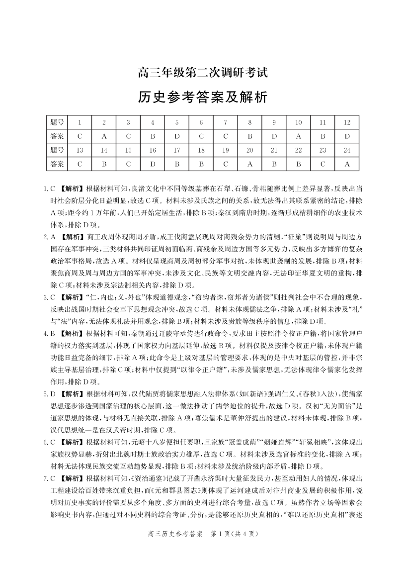 河北省衡水市2025-2026学年高三上学期第二次调研考试 历史答案.pdf