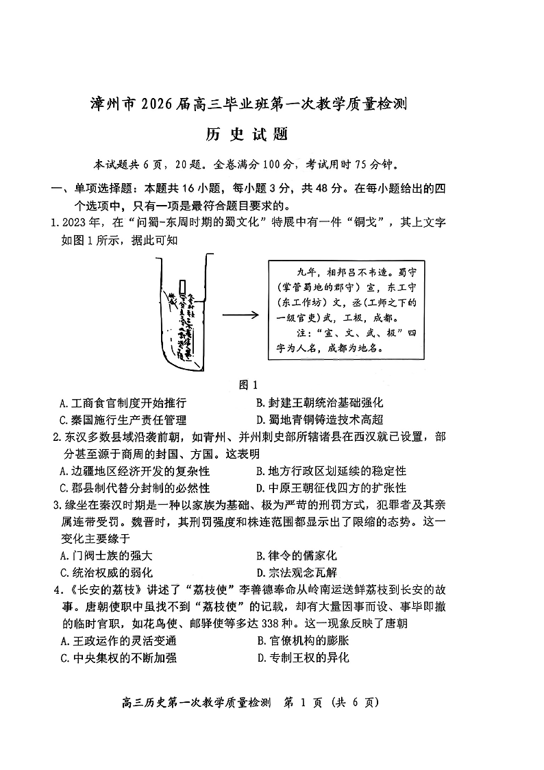 漳州市2026届高中毕业班第一次质量检测 历史.pdf