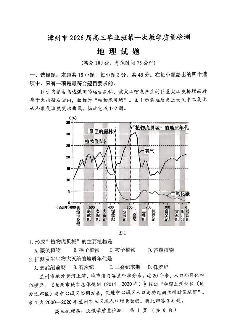 漳州市2026届高中毕业班第一次质量检测 地理.pdf