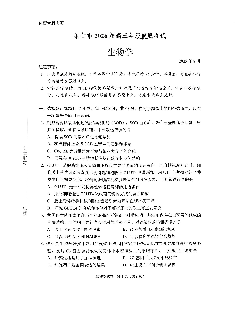 贵阳市2026届高三年级摸底考试试卷 生物.pdf