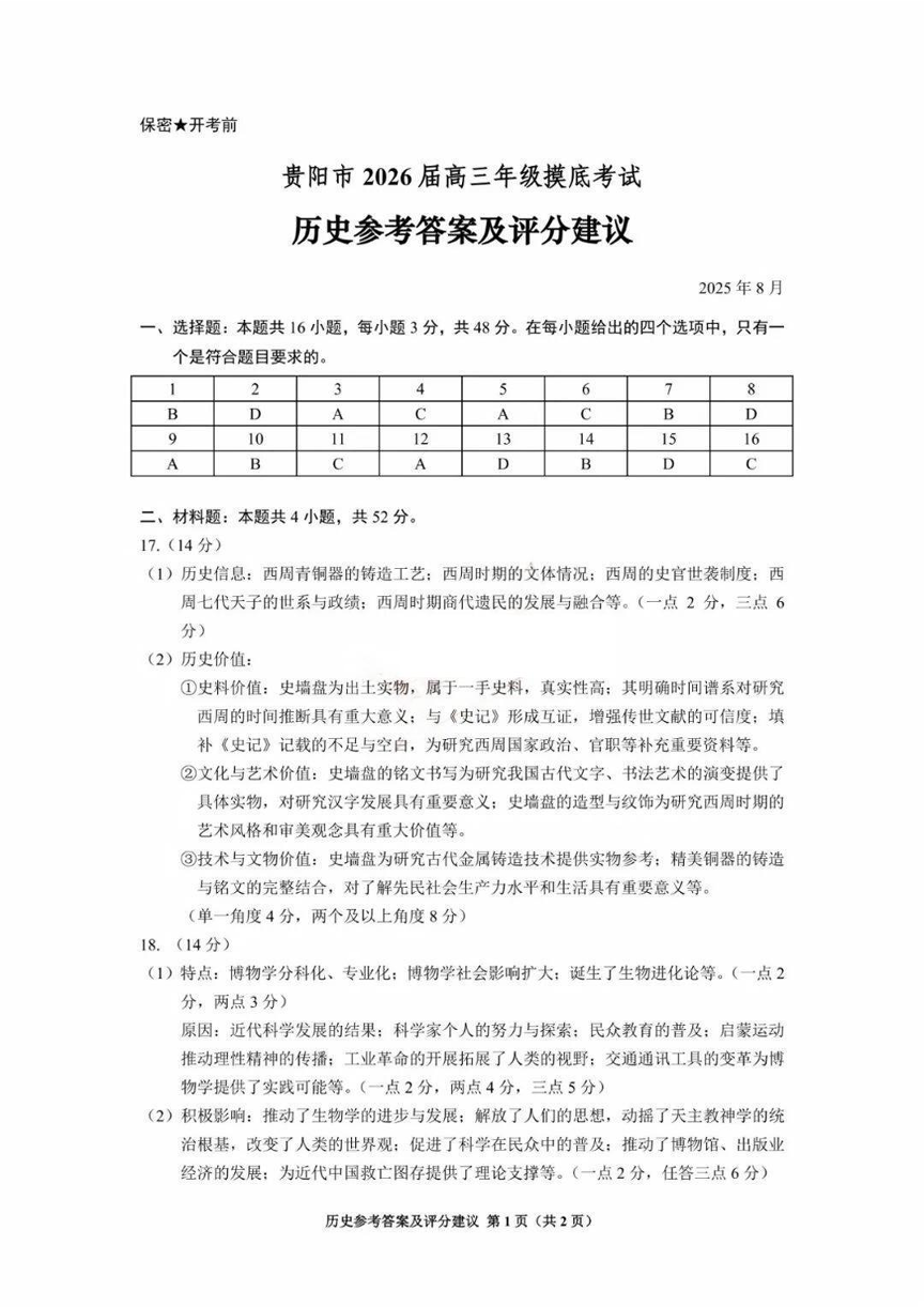 贵阳市2026届高三年级摸底考试试卷 历史答案.pdf