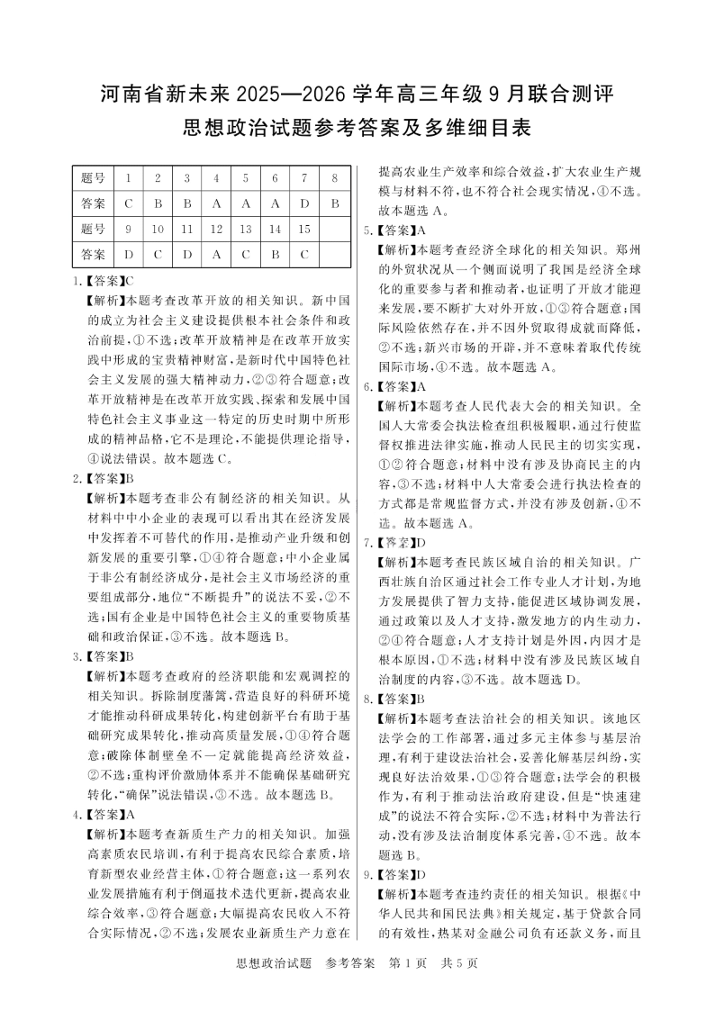 河南省新未来2025-2026学年高三年级9月份联合测评 政治试题卷答案.pdf