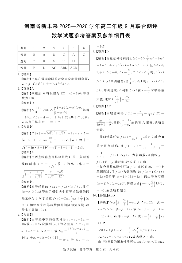 河南省新未来2025-2026学年高三年级9月份联合测评 数学答案.pdf
