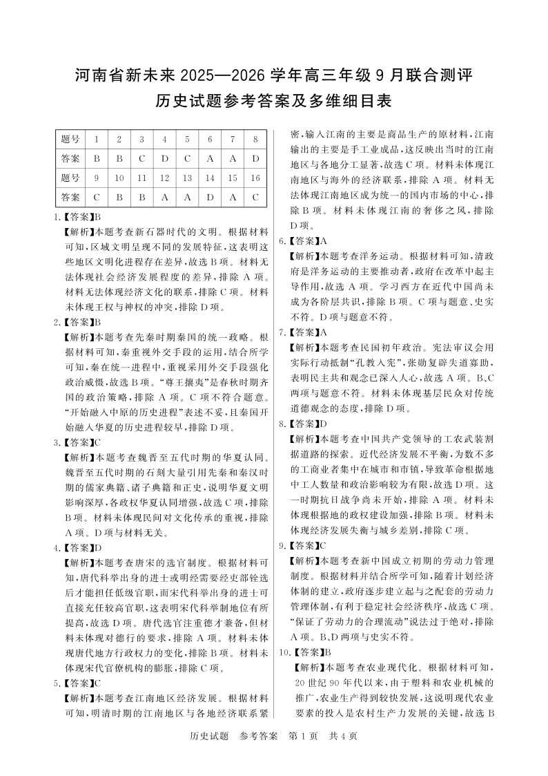 河南省新未来2025-2026学年高三年级9月份联合测评 历史答案.pdf