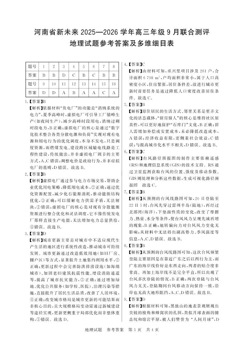 河南省新未来2025-2026学年高三年级9月份联合测评 地理答案.pdf