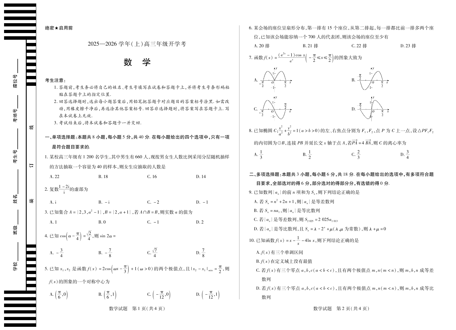 【数学】天一大联考·河南省2025-2026学年高三年级上学期开学考.pdf