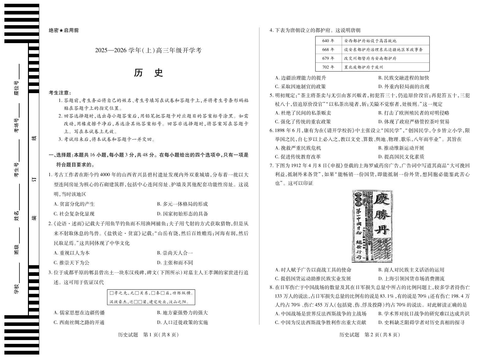【历史】天一大联考·河南省2025-2026学年高三年级上学期开学考.pdf