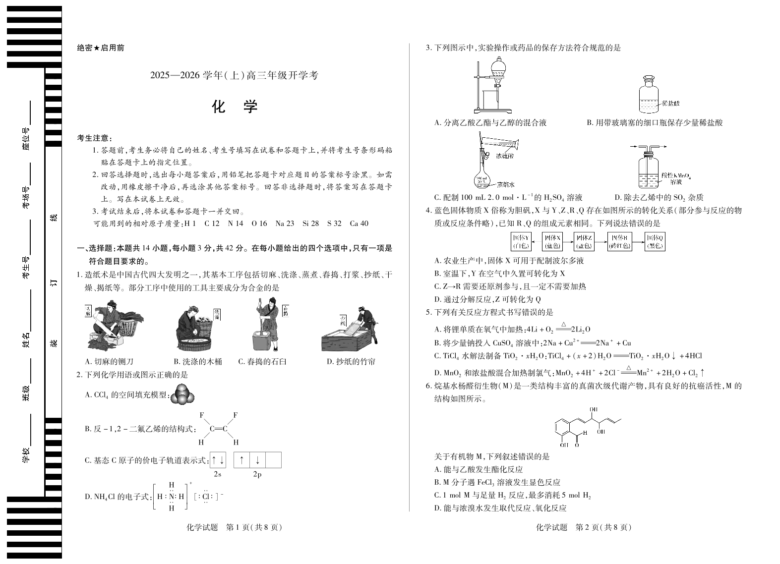 【化学】天一大联考·河南省2025-2026学年高三年级上学期开学考.pdf