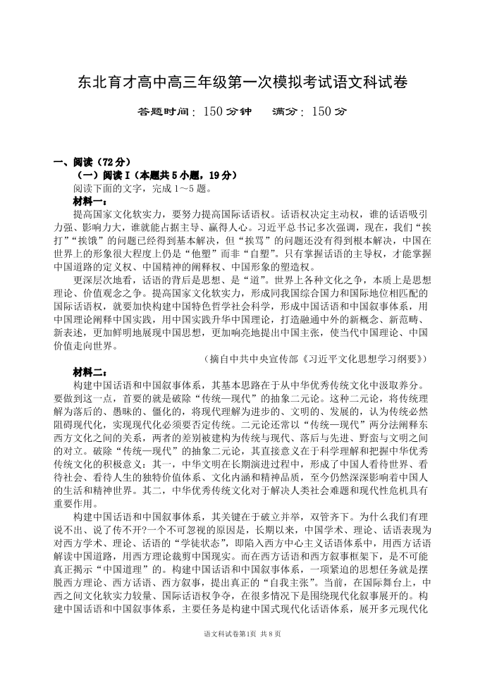东北育才高中2025-2026学年高三年级第一次模拟考试 语文.pdf