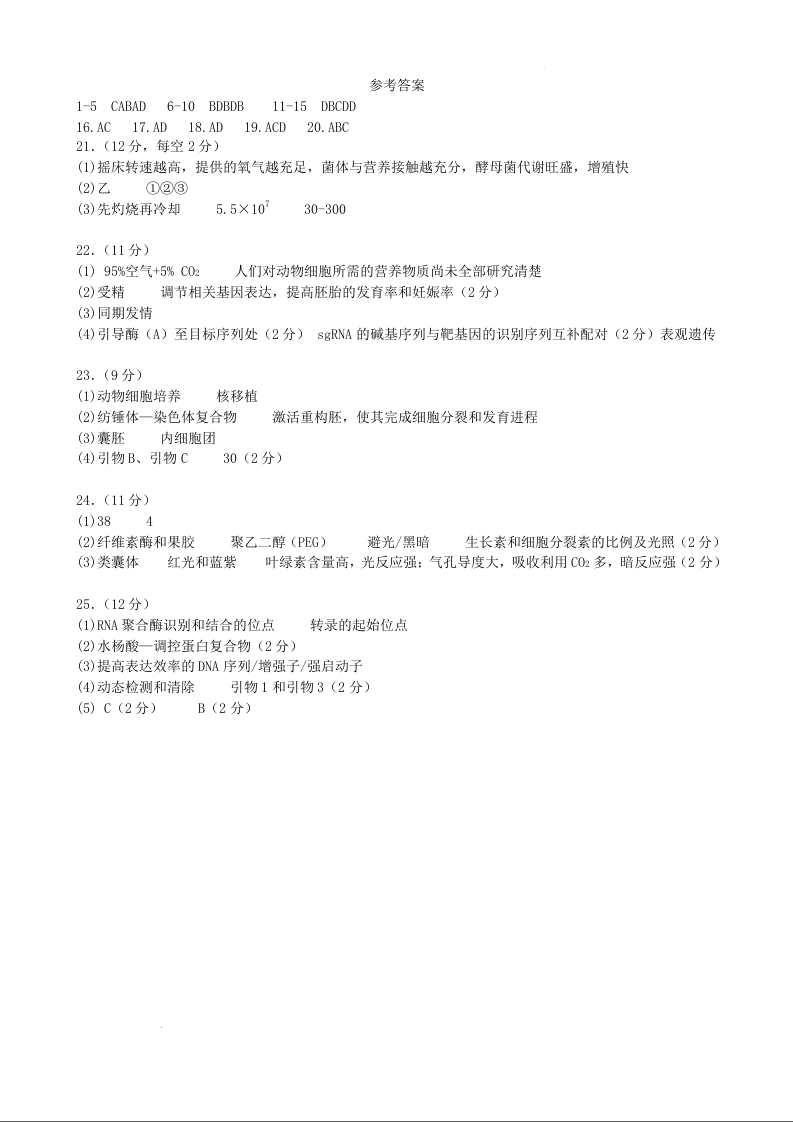 东北育才高中2025-2026学年高三年级第一次模拟考试 生物答案.docx
