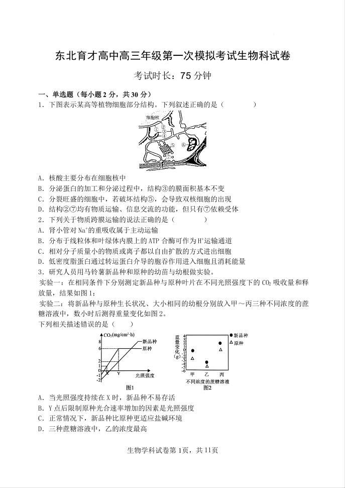 东北育才高中2025-2026学年高三年级第一次模拟考试 生物.docx
