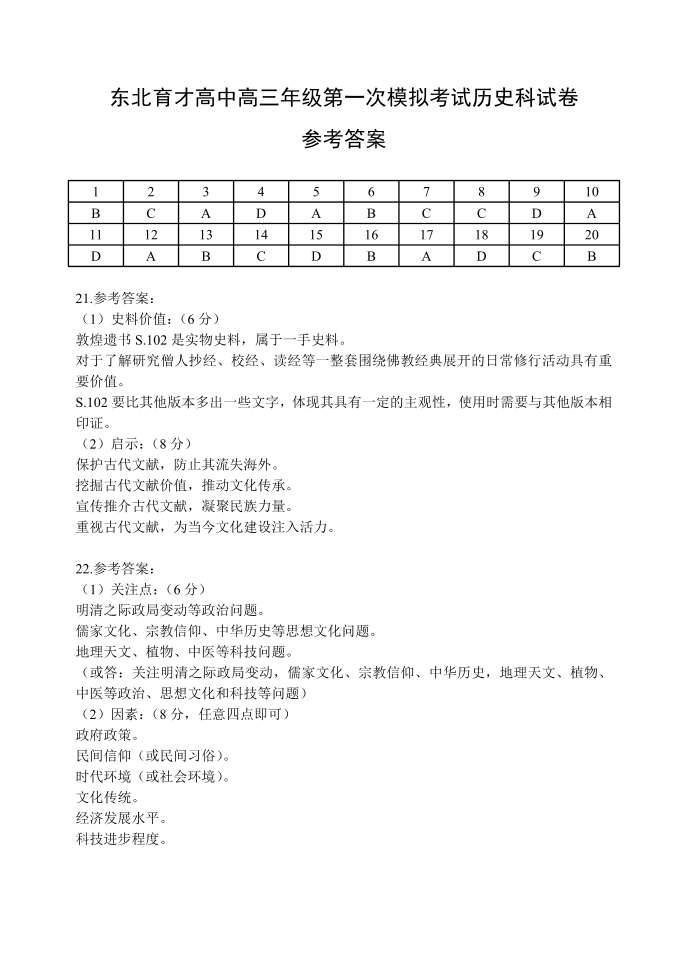 东北育才高中2025-2026学年高三年级第一次模拟考试 历史答案.pdf