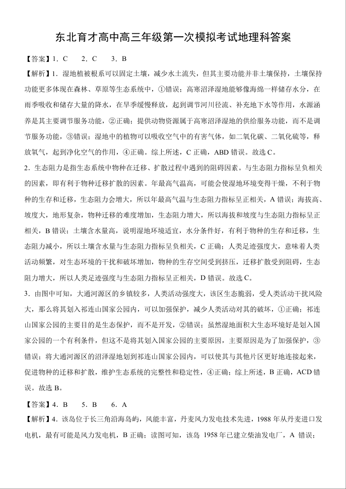 东北育才高中2025-2026学年高三年级第一次模拟考试 地理答案.docx