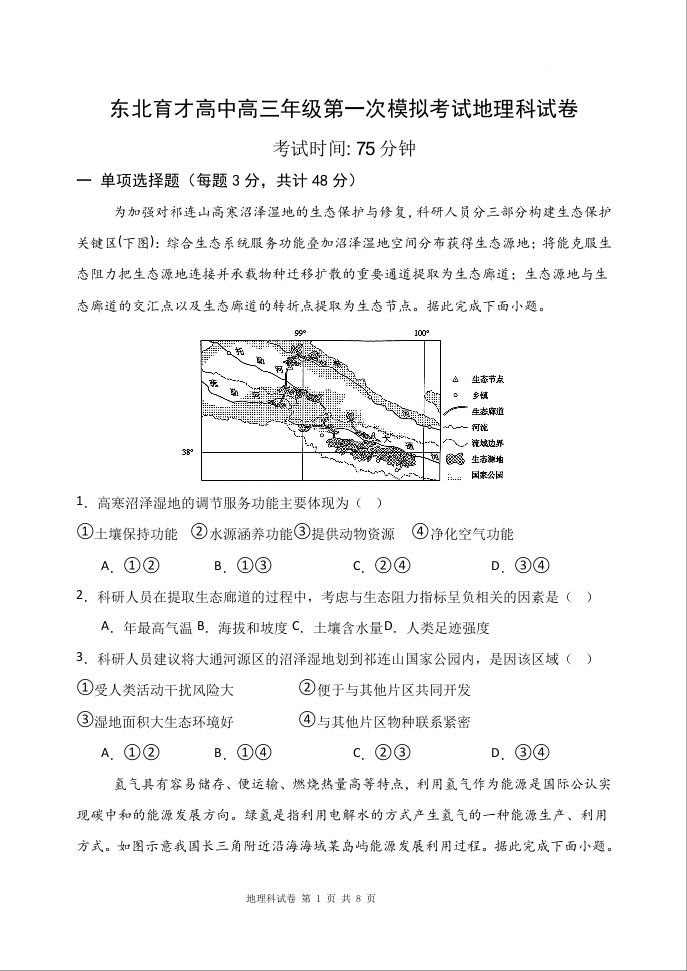 东北育才高中2025-2026学年高三年级第一次模拟考试 地理.docx